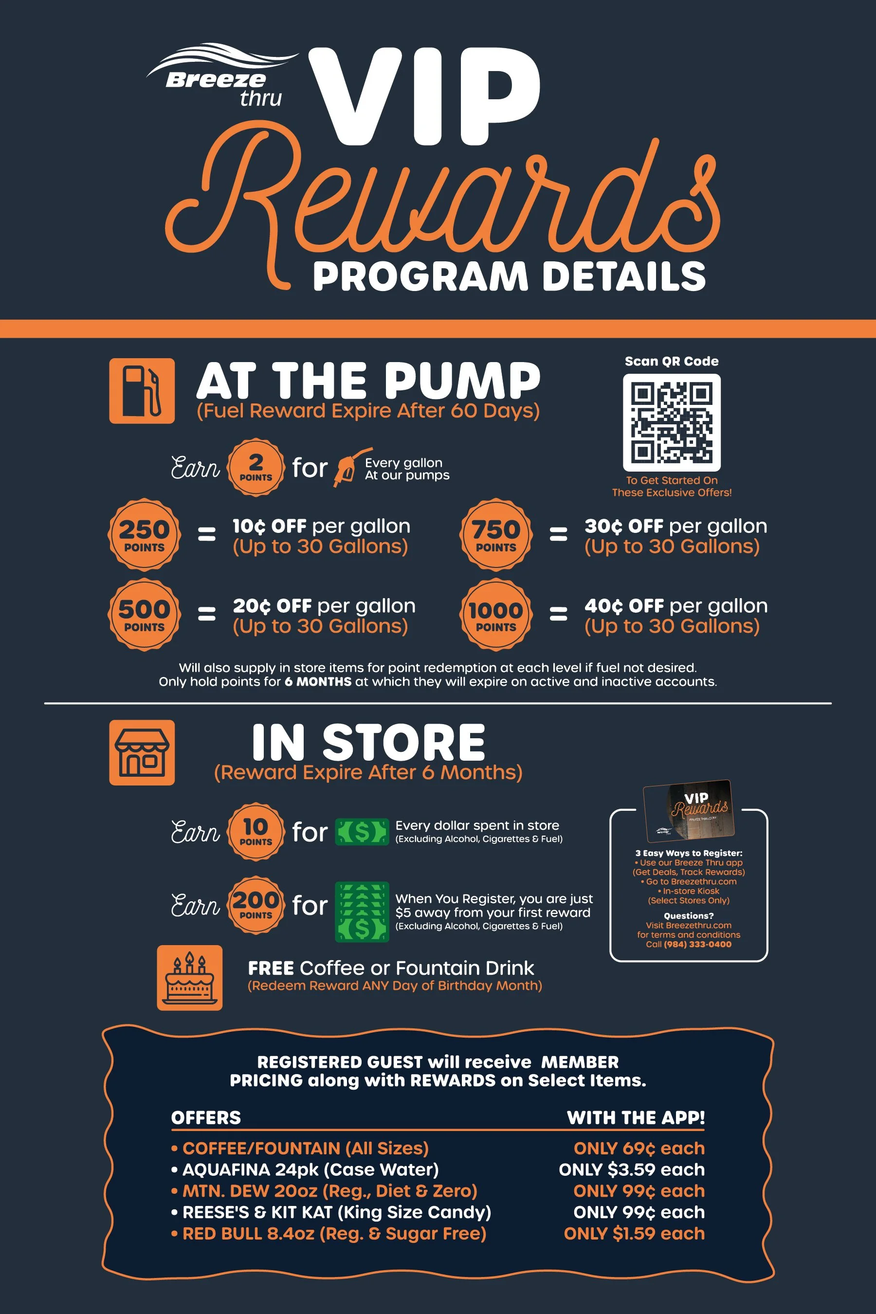 Advertisement created for Breeze Thru Markets while employed at TEC Graphics, Inc. Infographic styled design for quick knowledge on a rewards program offered by the client’s business.